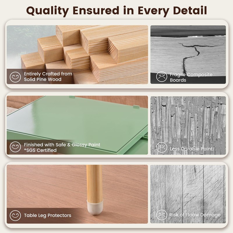 - [Certified Quality]: Made from solid pine wood, offering stability and durability; Children’s Product Certificate certified, ensuring safe materials for kids; the table stands 20.9" tall and supports up to 33 lbs; coated with SGS-certified, non-toxic paint for added safety