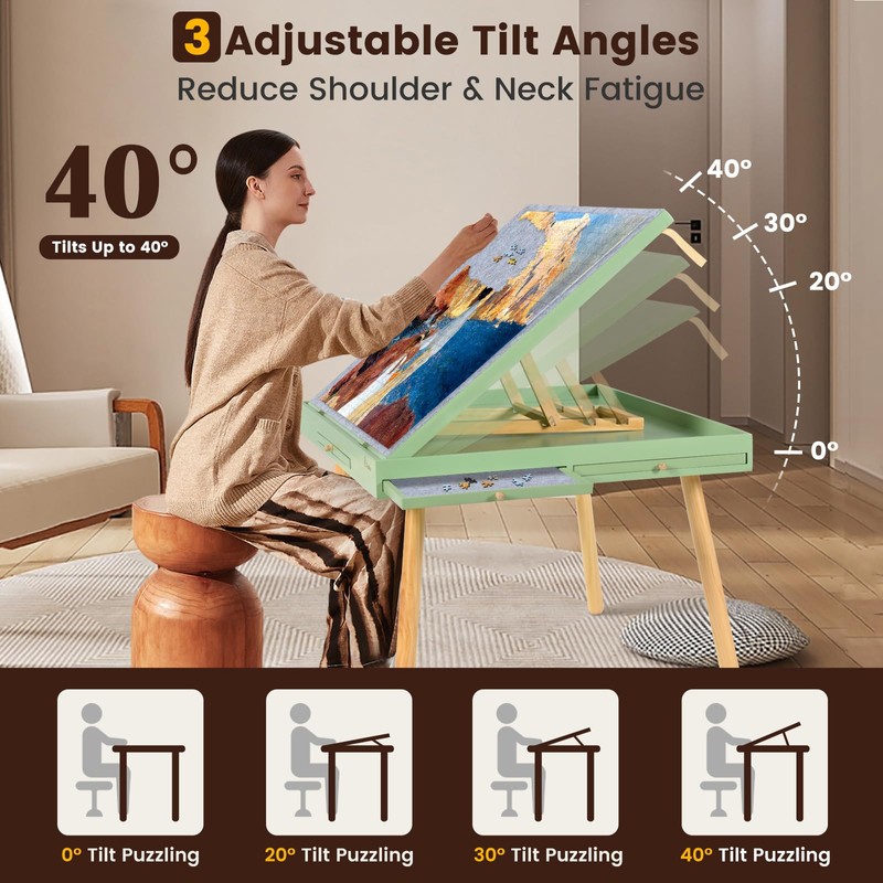 - [Detachable & Adjustable Design]: The removable top board allows the table to be split into 2 separate surfaces, supporting multi-user scenarios; 3 adjustable tilting angles (20°, 30°, 40°) offer customizable comfort for various puzzle preferences
