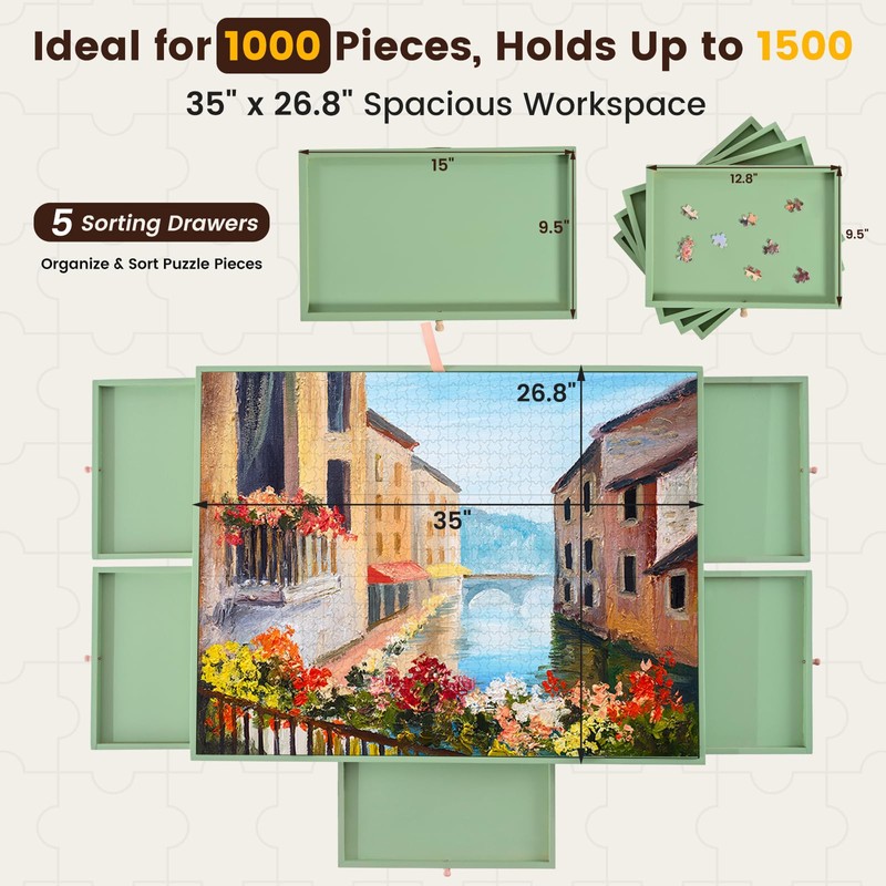 - [Spacious Workspace]: Features a 35" x 26.8" desktop workspace, providing ample room for 500 and 1000-piece puzzles, with a max capacity of 1500 pieces