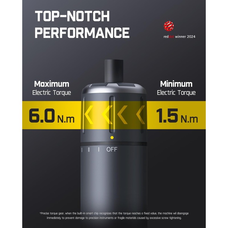 - 【Top-Notch Performance】Equipped with a 3 torque level of 1.5/3/4.2N.m and max hard torque of 6N.m, as well as a manual torque of 8N.m. Immediate stop the moment the finger lifts up, work smart not hard. This powerful electric screwdriver offers accurate torque forces for your handy work needs. Ideal for assembly and repair of furniture, air conditioner, faucet, socket board, desktop computer, etc.