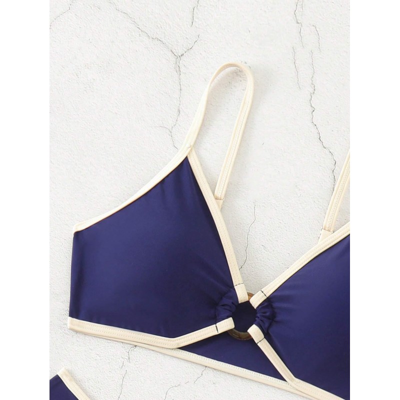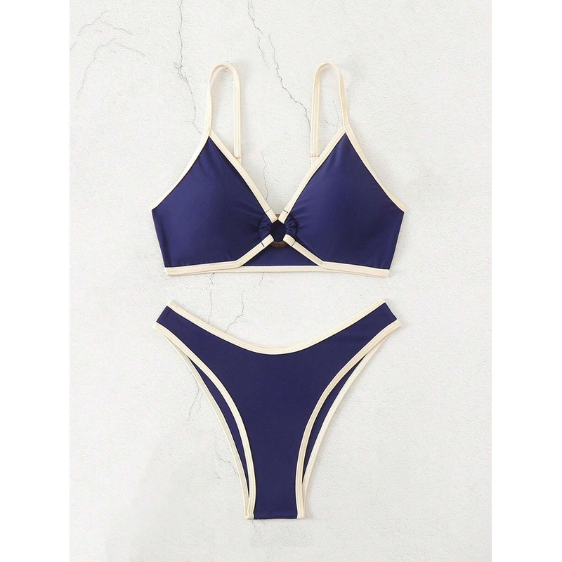 Fanuerg Women's Triangle Bikini Sets Circle Ring Linked Two Piece Swimsuit Color Block Cheeky Bathing Suit Navy Blue M