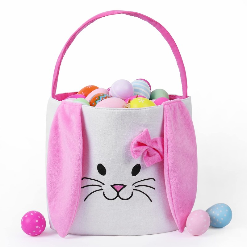 - Easter Gift: Cute bunny basket for carring gift and Egg Hunt. EGGS NOT INCLUDED.The basket might have a smell of new fabric, PlEASE VENTILATE 48h before using.