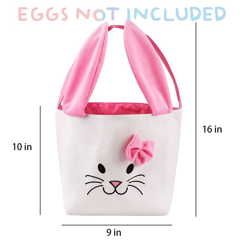 - Easter Gift: Cute bunny basket for carring gift and Egg Hunt. EGGS NOT INCLUDED.The basket might have a smell of new fabric, PlEASE VENTILATE 48h before using.