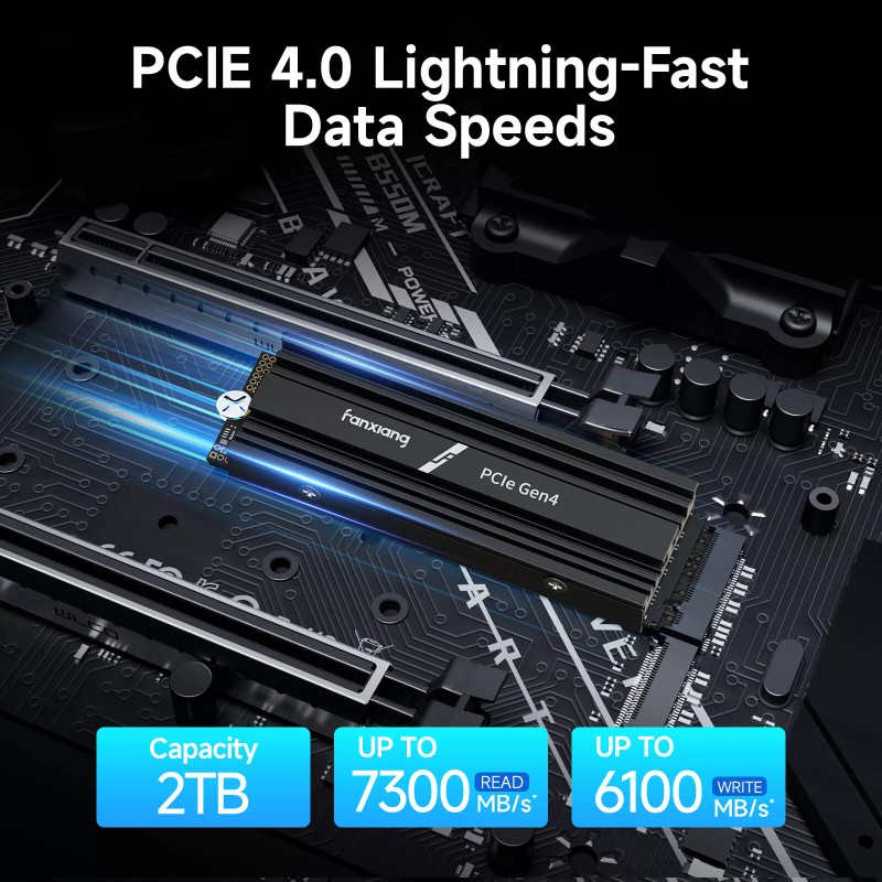 - Heatsink SSD NVMe PCIe Gen4x4 3D NAND Breakthrough Read and Write Speeds: Sequential Read Speed up to 7,300MB/s and Write Speed up to 6,300MB/s, the advanced SLC Cache Technology allows performance boost and longer lifespan