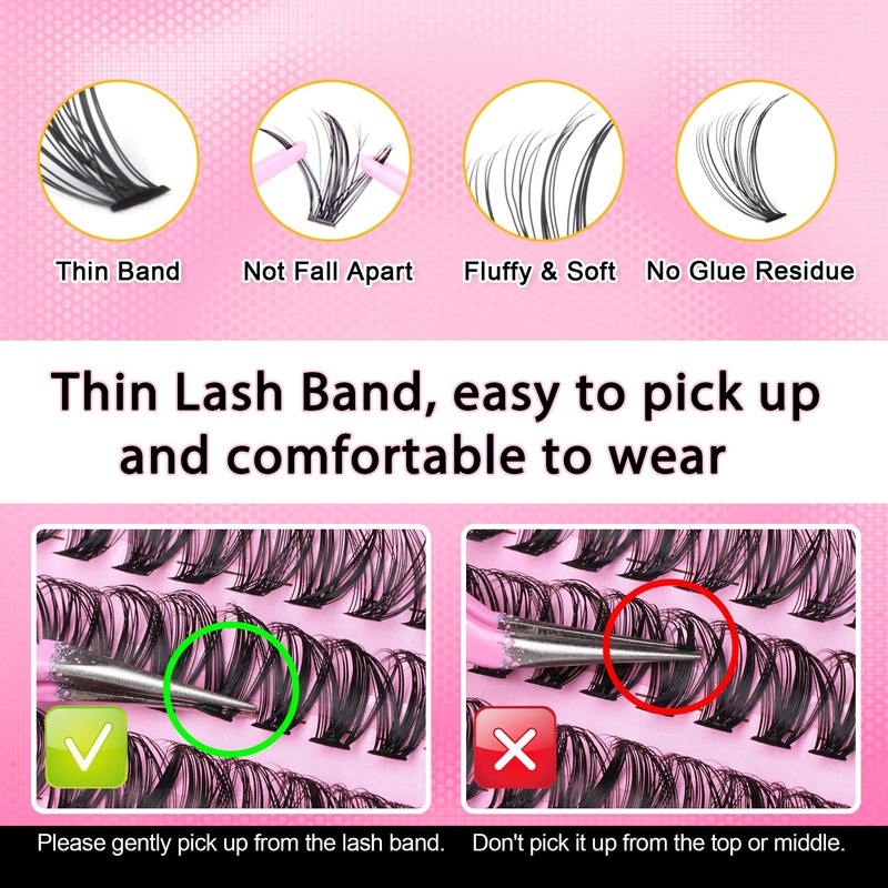 - High quality: The cluster eyelashes are made of korean imported materials, super soft and lightweight; Our eye lash clusters maintain the perfect d-curl; Long hold time, waterproof; It looks real and natural, and is soft and comfortable to wear, ensuring no burden