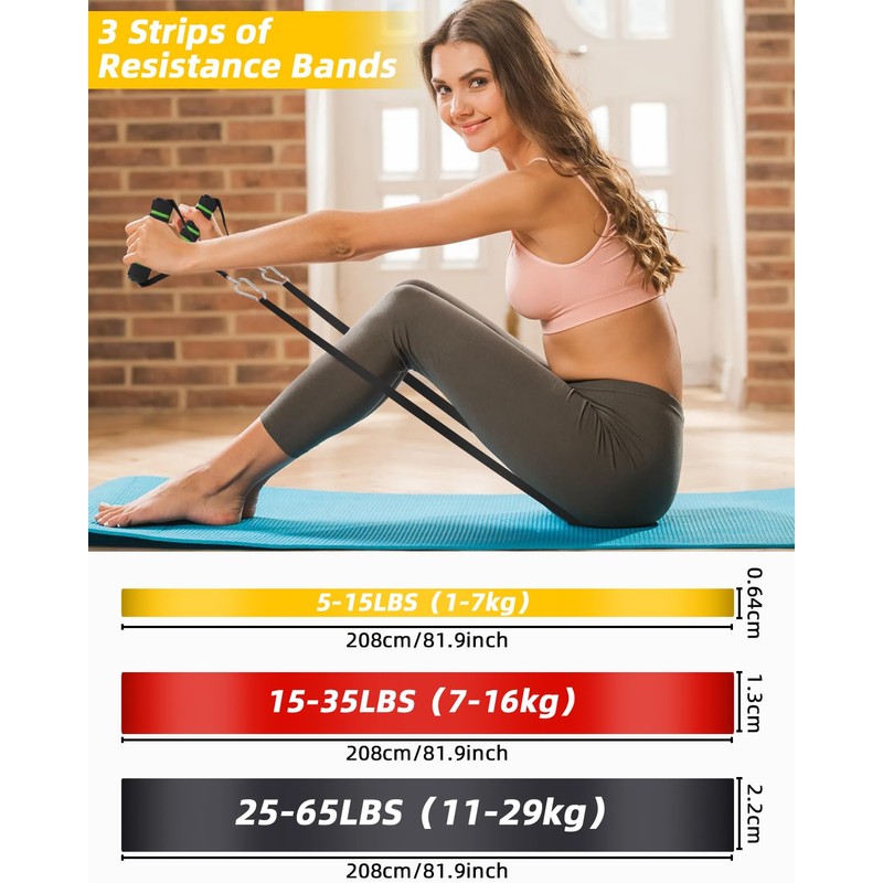 - Resistance bands set with accessories: our resistance band set comes with 3 different resistance bands, 2 handles, 2 protective covers, 1 door anchor and 1 portable cord bag, 1 instruction manual (English language not guaranteed). This accessory can be used with training bands to make your training more varied and create your own personal gym