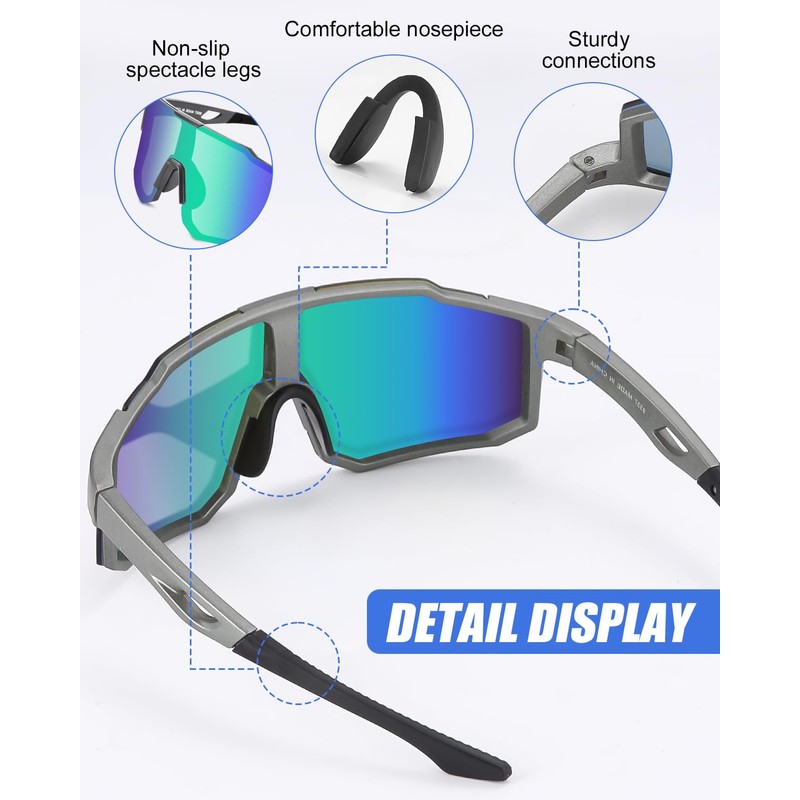 - Anti-fog and sturdy: these cycling sunglasses have nose pads made of hydrophilic rubber. The hydrophilic rubber stays grippy even when wet, so the goggles stay on your nose during sports, whether it's raining or foggy and sweaty, so you don't have to worry about your sunglasses falling off during strenuous training.