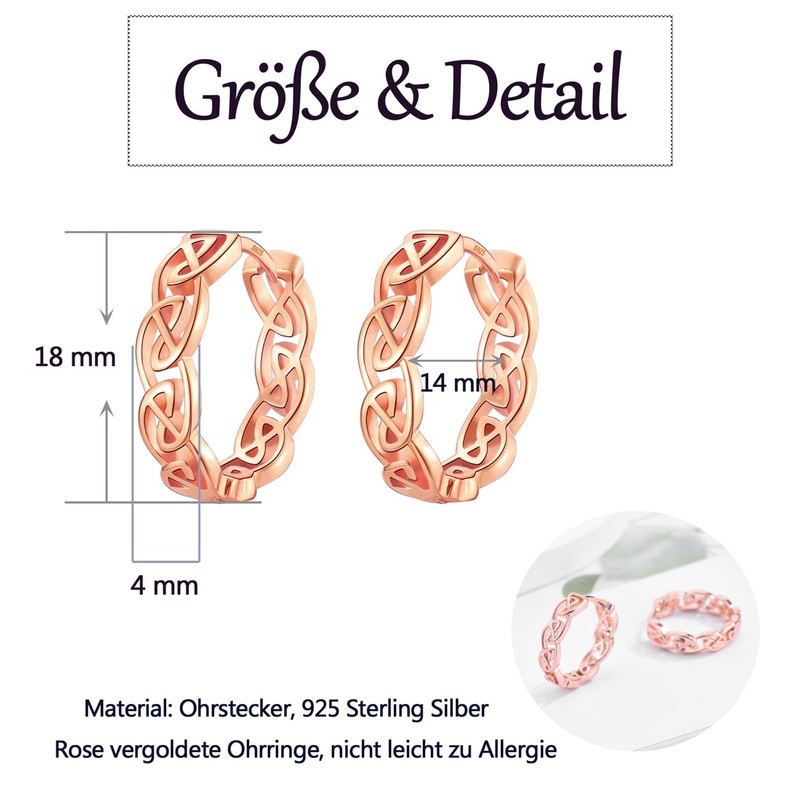 - Size: inner diameter of the earrings rose gold: 14 mm, width: 4 mm