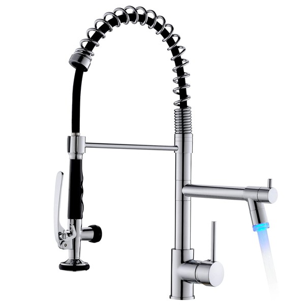 Fapully Kitchen Faucet with Pull Down Sprayer,Commercial Single Handle Kitchen Sink Faucet with LED Light Chrome