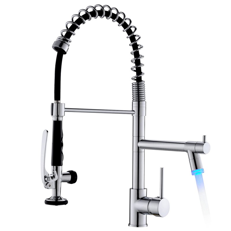 - Three-color Led Light Design: LED kitchen faucet has mini built-in generating electricity devices, no need for batteries, as long as the water flows it will give out light, turn off the water, and the light goes out immediately. The color of LED lights changes automatically via water temperature. Protect your family from cold water and hot water, especially elderly people and children.