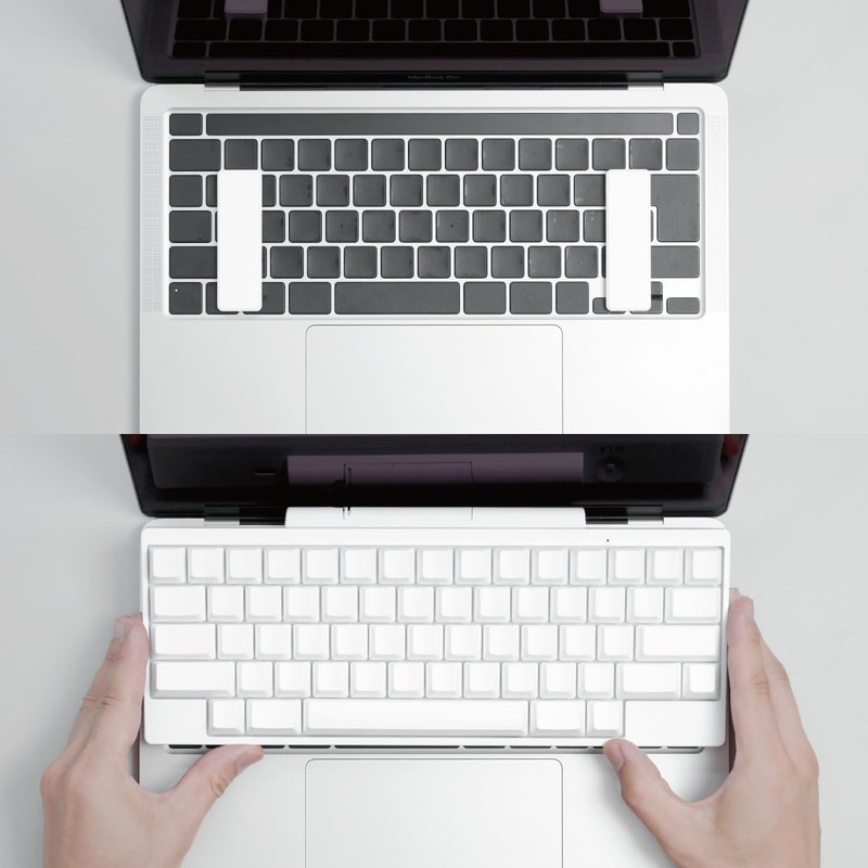 - The thickness of the board surface to place the external keyboard is about 4mm. It ensures comfort without hiding the screen as much as possible. The photo shows the MacBook Pro 13" 2020 ~ (M1)