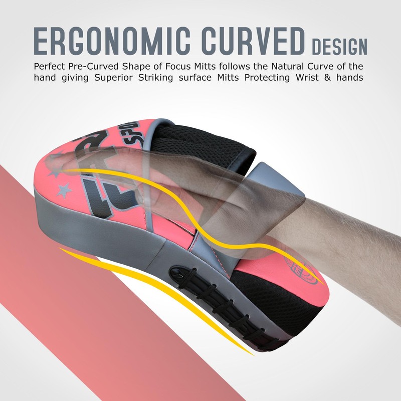 Ball grip which provides the best possible palm grip in extreme punching and jabbing sessions, easy to put on and slip off, moisture-absorbing lining design ventilated mesh panels of MMA focus mitts keep your hands dry, wrist support offer rest and comfort to the wrist and keep the connecting bone stress free, sparring mitts allow you to achieve an ideal fit no matter your hand size.