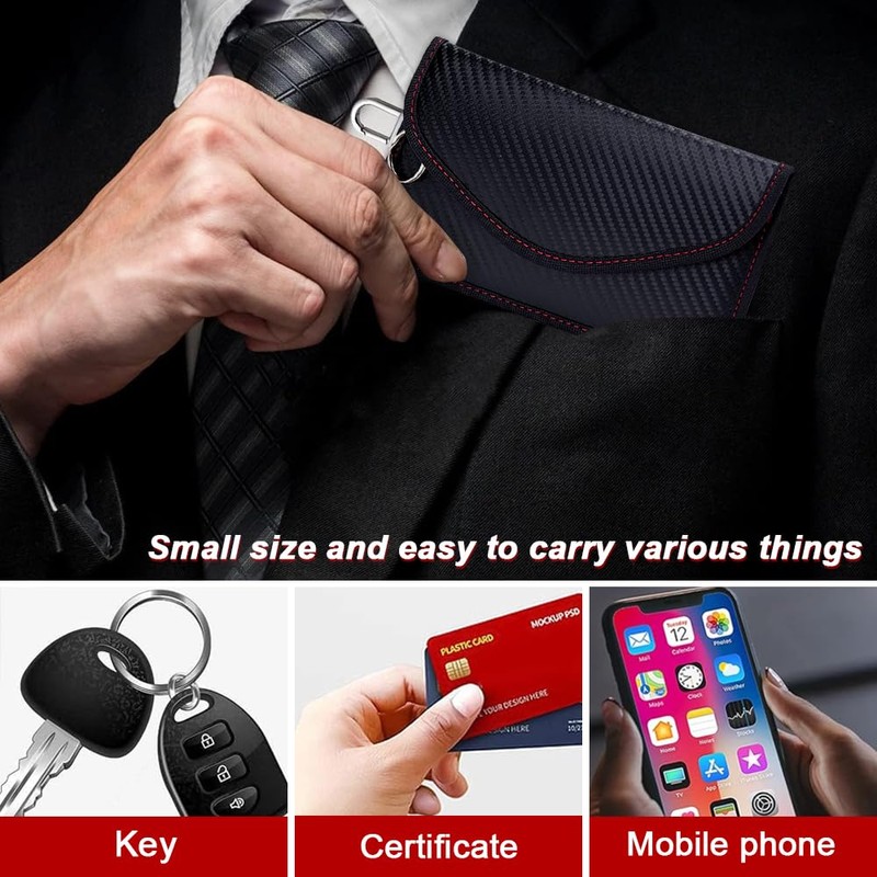 - 🔹High Quality: These faraday pouchs is constructed with premium carbon fiber textured material wear resistant, dirty resistant, waterproof, strong, durable, not easy to break, long service time.
