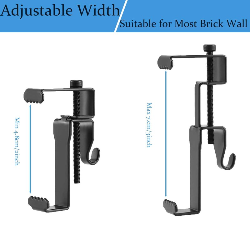 - [ No Drill Installation ] These brick hooks can easily and quickly attach to brick walls without damage.No screws, no nails and no damage to your wall.The brick clamp hooks opening adopts saw teeth to firmly grip on the brick wall and is not easy to fall off.