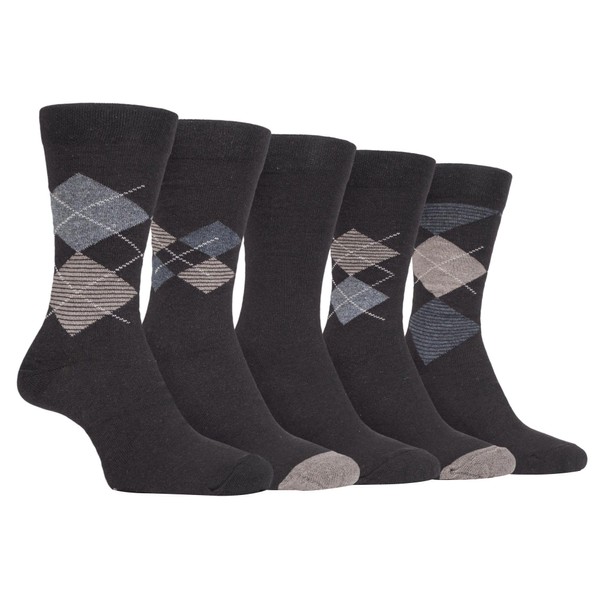 Farah - 5 Pack Mens Thin Breathable Classic Patterned Soft Top Office Cotton Dress Socks (6-11 uk, CS190BRNGRY (Argyle))