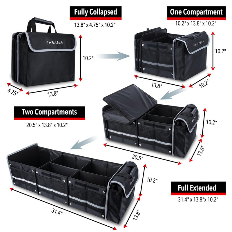 Rev up every journey and adventure. Add the Farasla Trunk Organizer with Leakproof Cooler Bag to your cart today!