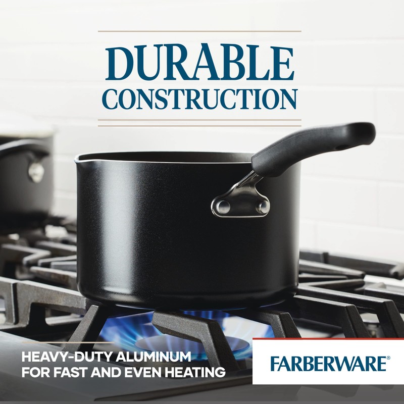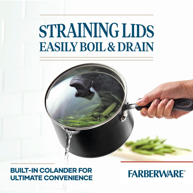 Farberware Cookstart DiamondMax Nonstick Straining Saucepan, Dishwasher Safe, 3 Quart, Black
