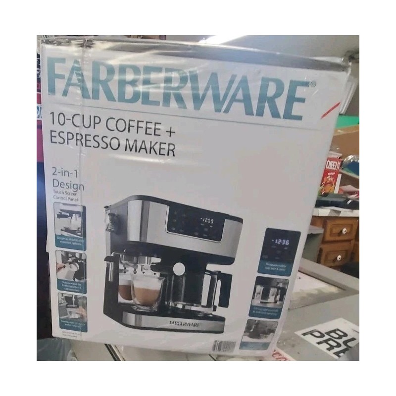 FARBERWARE DUAL BREW 10 CUP COFFEE + ESPRESSO MAKER TOUCHSCREEN BLACK/STAINLES