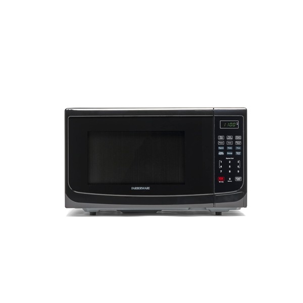 - CONVENIENT: Farberware 1.1 Cu. Ft. black microwave oven is the ideal anywhere you need it small microwave solution for home or office. Full-sized cooking that fits in a compact space.