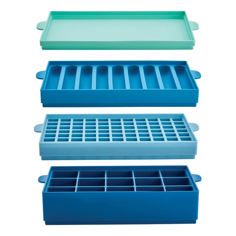 - 3 SPACE-SAVING STACKING TRAYS, PLUS LID: make perfectly sized iced cubes for any size glass or water bottle, with a convenient lid to protect from spilling and freezer odors