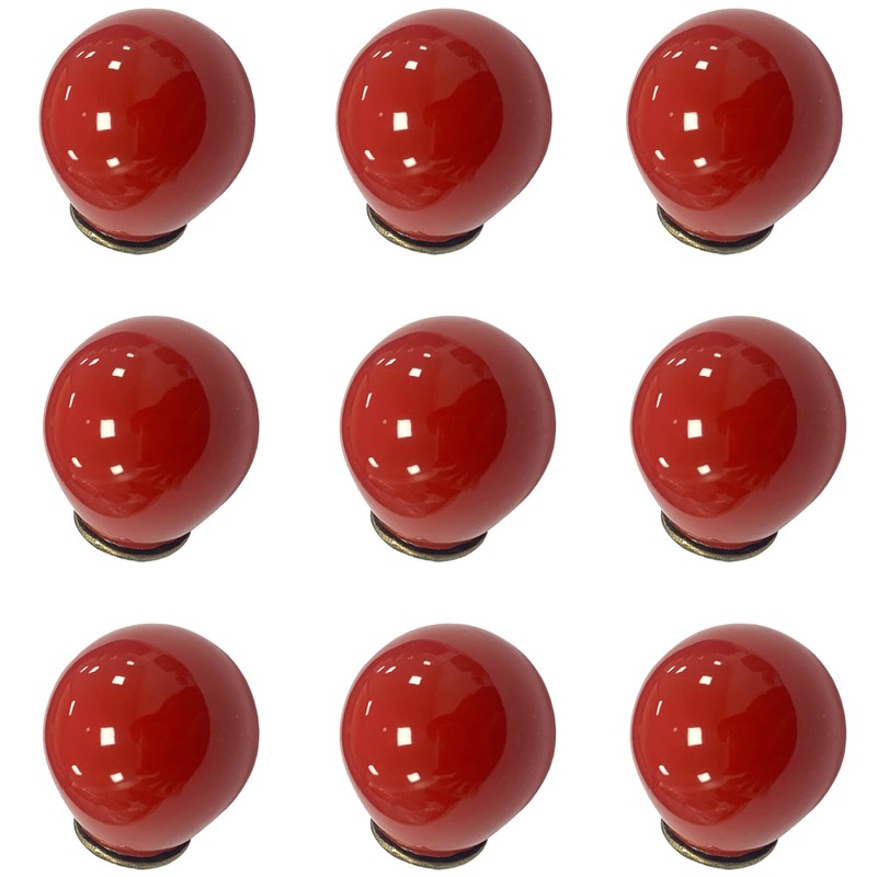 - [Package Includes] 10Pcs Round Red Ceramic Cabinet Knob Pulls, Comes with Mounting Screws.