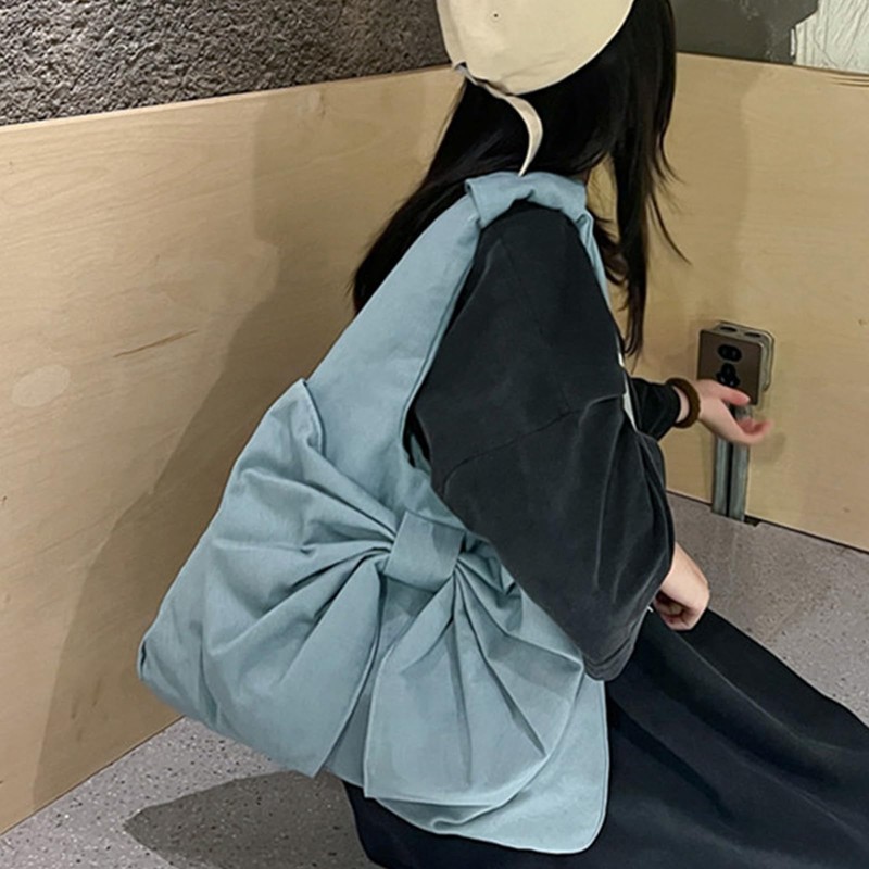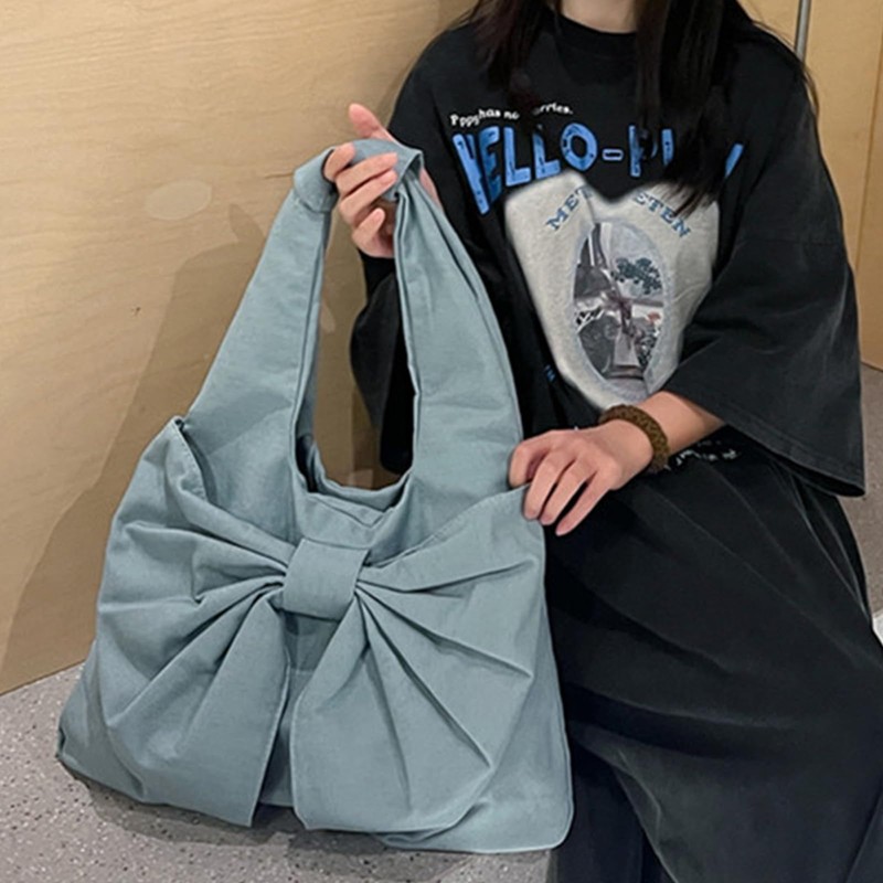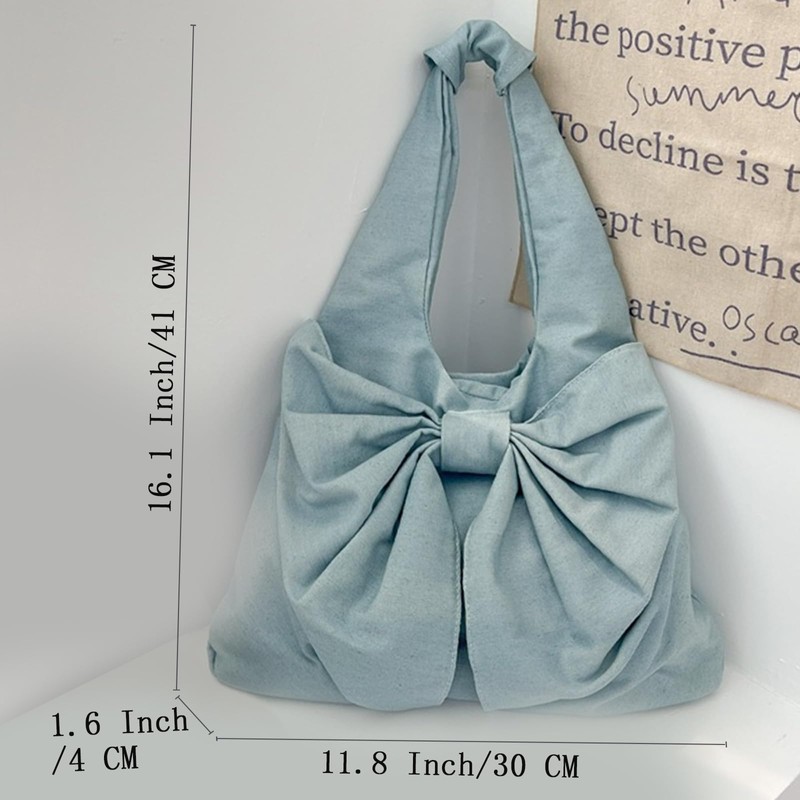 Farcauo Cute light blue Bow Canvas Tote Bag Purse for Women Bow Tote Bag Y2k Purses Cute Shoulder Handbag Travel Aesthetic Purse, #Y Light Blue Bow Canvas Tote Bag