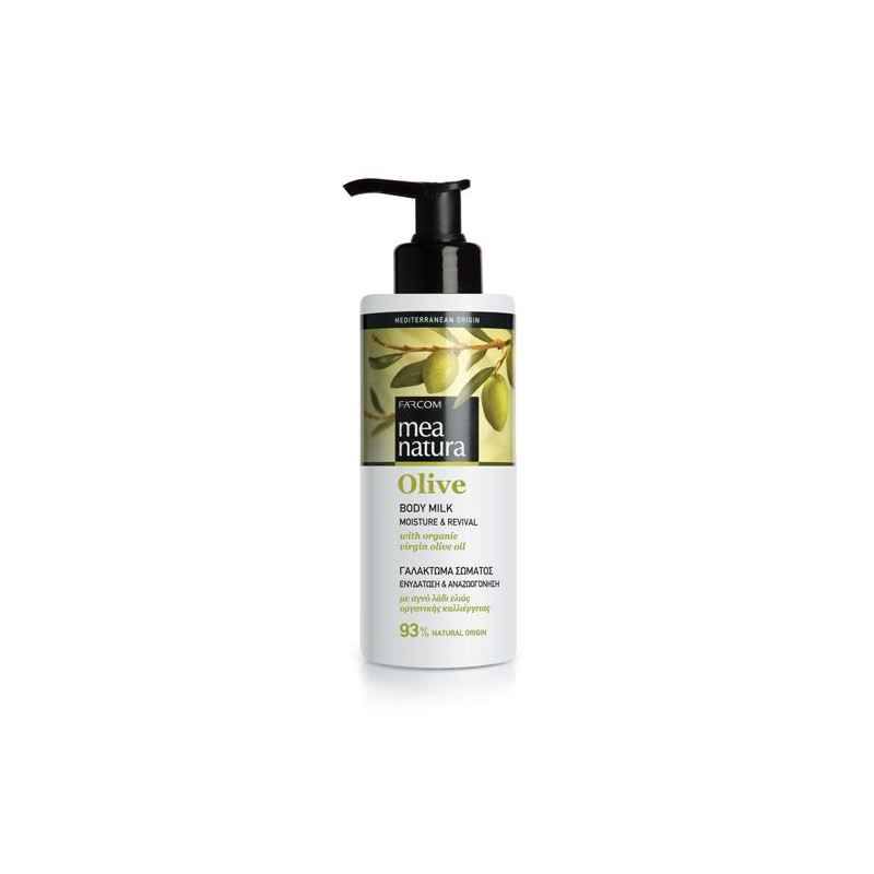 Farcom Mea Natura Olive Body Milk is formulated with organically cultivated virgin olive oil*, Vitamin E and almond oil, an exclusive blend of natural ingredients with antioxidant properties that leaves your skin feeling smooth and revitalized. Hydrates, nourishes, and reinforces skin elasticity while giving skin a lasting feeling of extreme softness. Fast-absorbing and non-greasy.