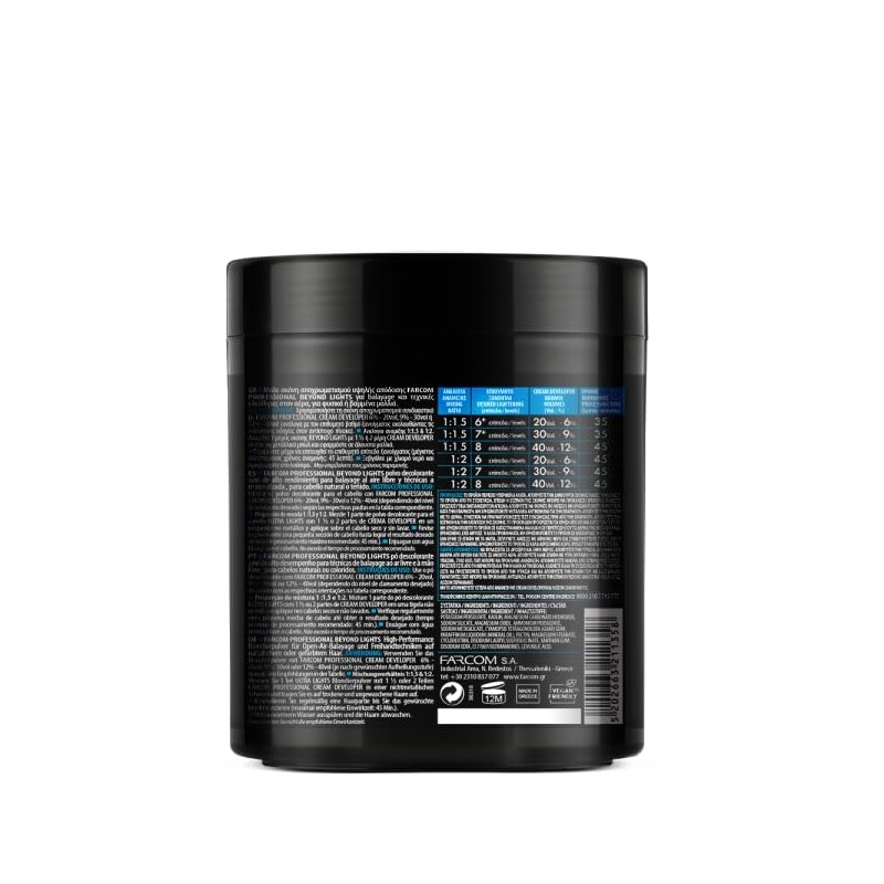 - Farcom professional beyond lights: high-performance whitening powder for balayage and hands-free techniques outdoors. Suitable for natural and coloured hair, it allows up to 8 levels of lightening with even, clean results and easy application.