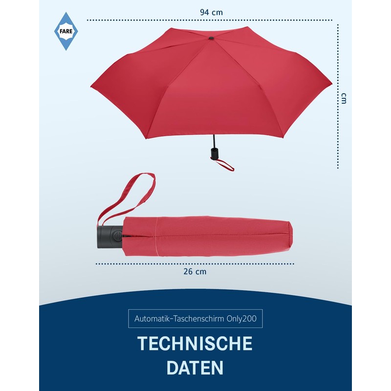 FARE FiligRain Only200 Automatic Pocket Umbrella - Super Light at Only 200 g, Automatic Open/Close, Windproof Plus, Compact (Closed Only 26 cm Long), red