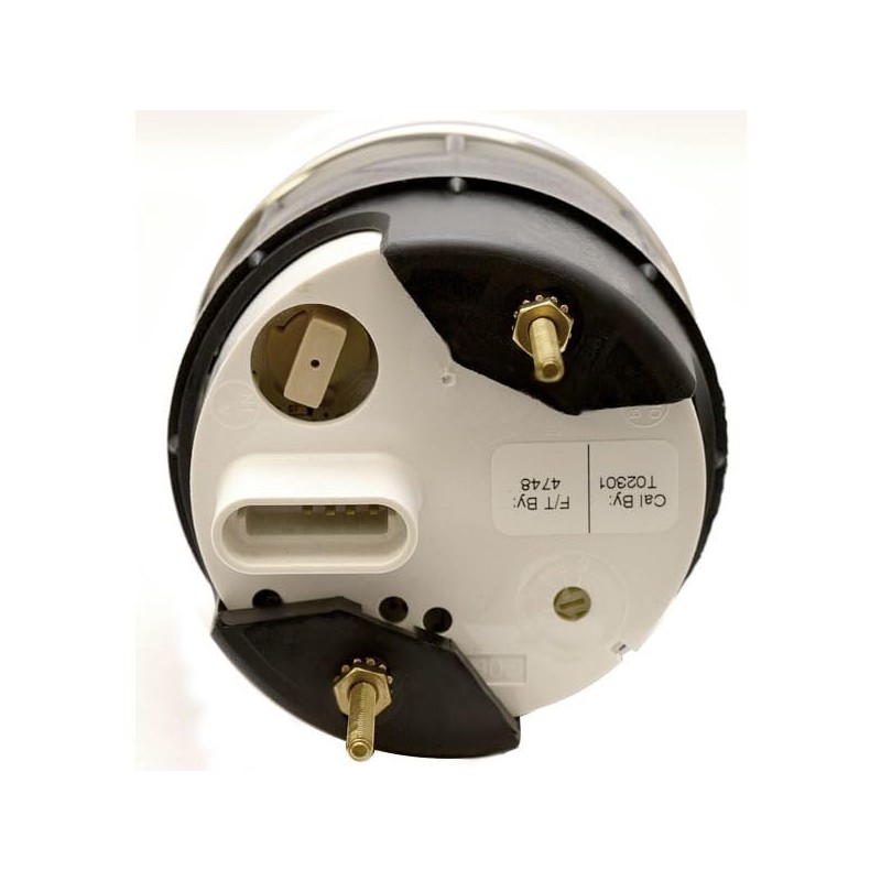This 7000 RPM multifunction gauge features a clear halogen bulb, silver bezel, domed lens, spun silver face, red needle, black lettering, numerals, and accents. The overall measurements are approximately 3 3/4" Dia across the face including bezel x 4 3/8" D. Has (1) 4 Spade connection. Requires 3 3/8" Dia cutout. Mounting bracket included.