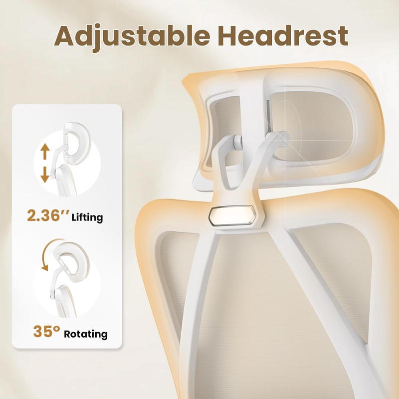 Farini Ergonomic Office Chair with Footrest, Mesh Office Desk Chair with Headrest, High Back Computer Chair with Adjustable Lumbar Support.for Home Office Study Room Bedroom (Light Khaki)