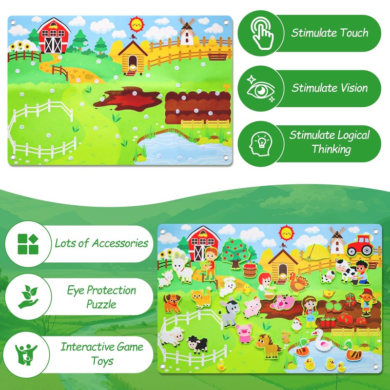 - 【Enhances Creativity & Motor Skills】:Ideal for preschoolers, this farm felt board for toddlers boosts children’s creativity, imagination, and motor skills. It helps them learn problem-solving while developing hand-eye coordination through engaging, hands-on play.