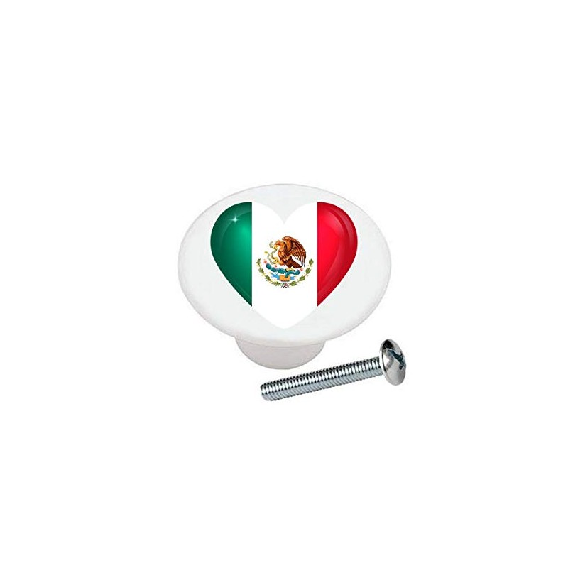 Farm Fresh Knobs Mexican Flag Heart KNOB Mexico Glossy Ceramic Dresser Drawer Pulls Cabinet Knobs