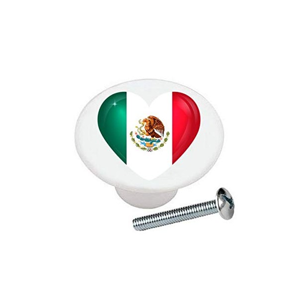 Farm Fresh Knobs Mexican Flag Heart KNOB Mexico Glossy Ceramic Dresser Drawer Pulls Cabinet Knobs