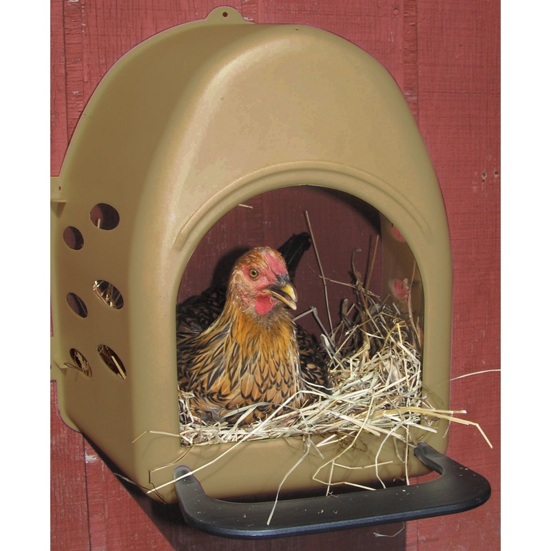 - Curved roof prevents roosting and a sturdy perch provides easy access for hens