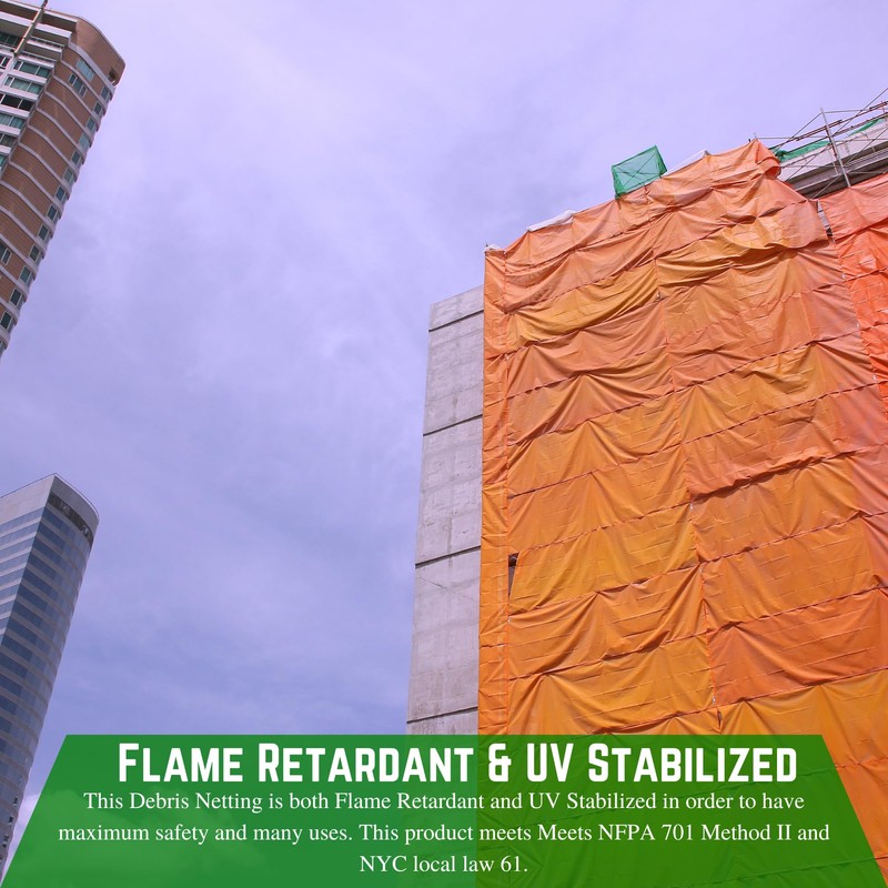 - Flame Retardant & UV Stabilized - This Debris Netting is both Flame Retardant and UV Stabilized in order to have maximum safety and many uses. This product meets Meets NFPA 701 Method II and NYC local law 61.