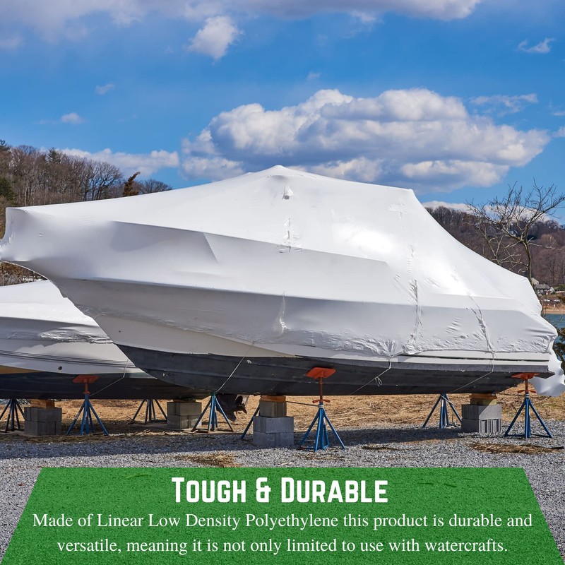 • Longevity - Our boat shrink wrap is built to last and is the perfect solution for storing recreation vehicles when not in use. Made of Linear Low Density Polyethylene, or LLDPE this product is extremely durable and versatile, meaning it is not only limited to use with watercrafts. It is a string plastic which will stop tears in the plastic if they form for the ultimate life span of your plastic. Use for your toughest situations.