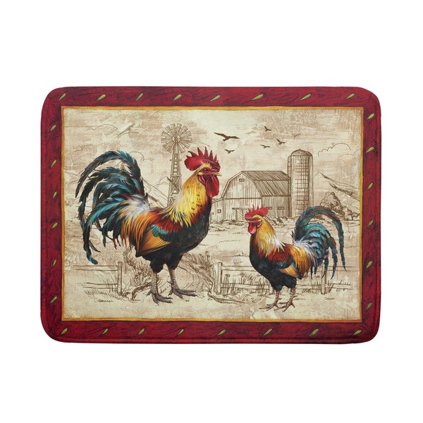 Farm Rooster Dish Drying Mat for Countertop 18x24 Inches Red Rustic Chicken A...