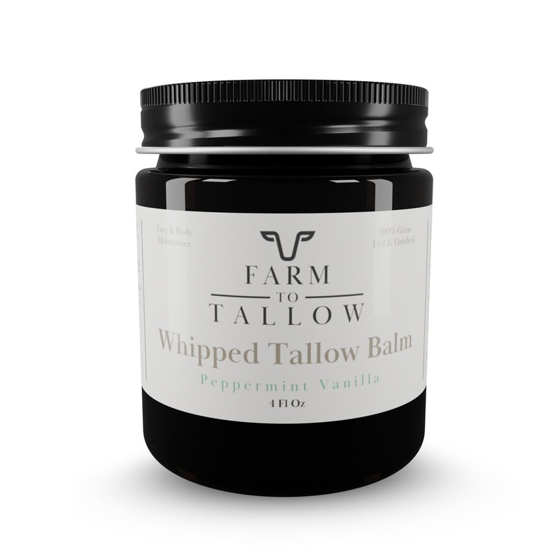 FARM TO TALLOW Whipped Tallow Balm for Face, Skin and Body - Gentle and Hydrating - 4 Oz, Peppermint Vanilla - Beef Tallow Moisturizer - Natural Skincare Cream (4oz, Peppermint Vanilla)