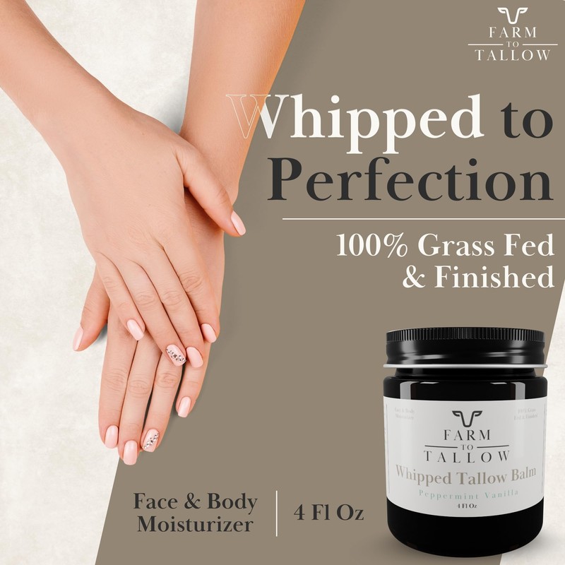 - Your Skincare Essential - Elevate your routine with our whipped beef tallow balm for face, body and skin, made from whipped grass-fed tallow and olive oil to smooth skin and soften fine lines. Use it as a daily moisturizer, night treatment, balm for dry patches, or even on cuticles and heels.