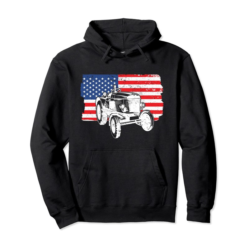 Farm Tractors I USA Flag I Patriotic Farming Gift I Farmer Pullover Hoodie