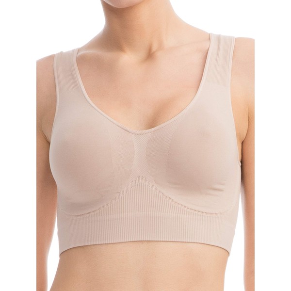 FarmaCell Bodyshaper 618 - Stretchy Breast Supportive Push Up Bra with Wide Shoulder Straps, beige