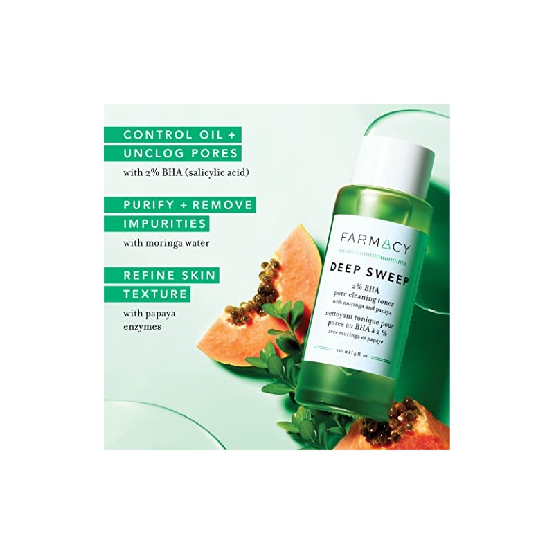 Farmacy Farmacy 2% Salicylic Acid Toner for Face - Deep Sweep Gentle BHA Exfoliant for Oily Skin - Refines Texture with Papaya Enzymes & Moringa Water for a Healthy-Looking Complexion (50ml)