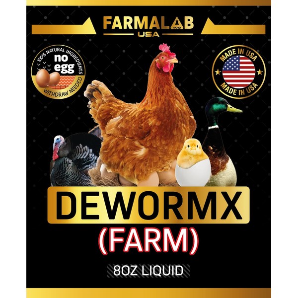 Farmalab Natural Dewormer No Withdraw Hens, Ducks, Roosters, Turkeys, Goose, Parakeets, Cockatiels, Lovebirds, Finches, Quakers, Pigeons, Palomas, Buchones, All Baby Chicks (8oz, Poultry Farm)