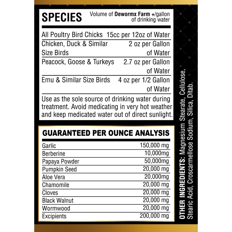 Farmalab Natural Dewormer No Withdraw For Hens, Ducks, Roosters, Turkeys, Peacock, Goose, Emu, Parakeets, Cockatiels, Canaries, Lovebirds, Finches, Quakers, Pigeons, Palomas, Buchones, All Baby Chicks