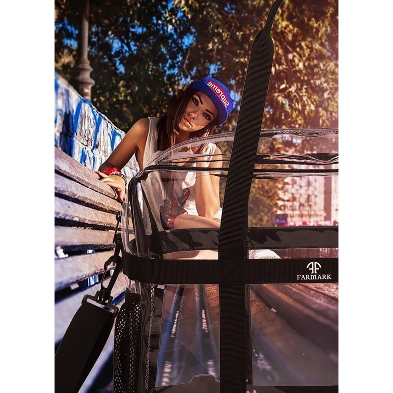 - Alta calidad y resistente: la bolsa transparente para deportes FARMARK está hecha de material de PVC de 0,5 mm. La textura general de la bolsa transparente es muy buena, el material es grueso y fuerte, y no hay olor irritante. No hay necesidad de preocuparse por dañar tu bolsa debido a problemas de carga de peso