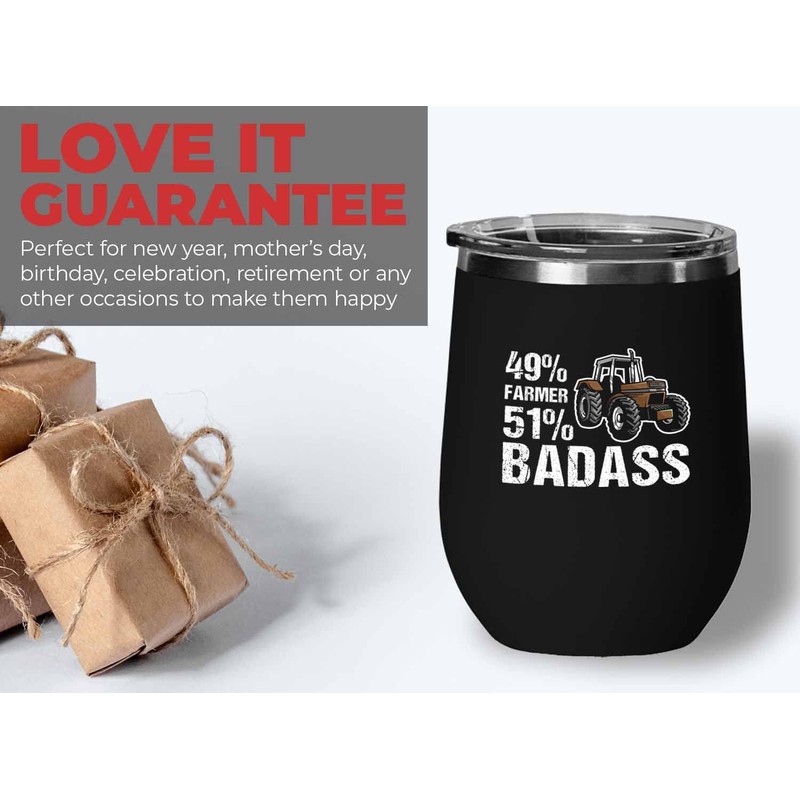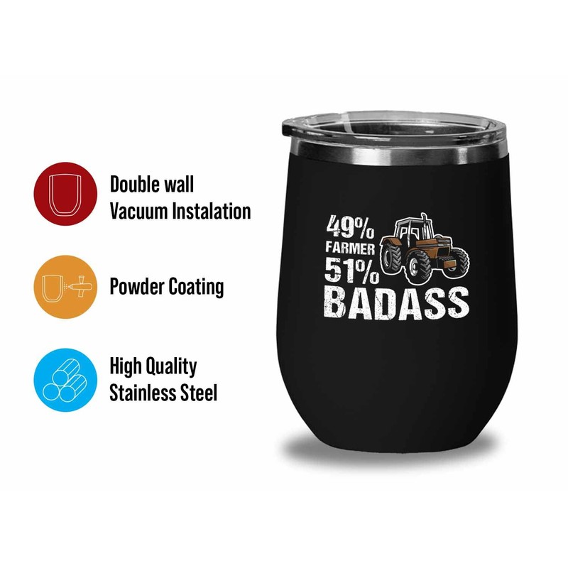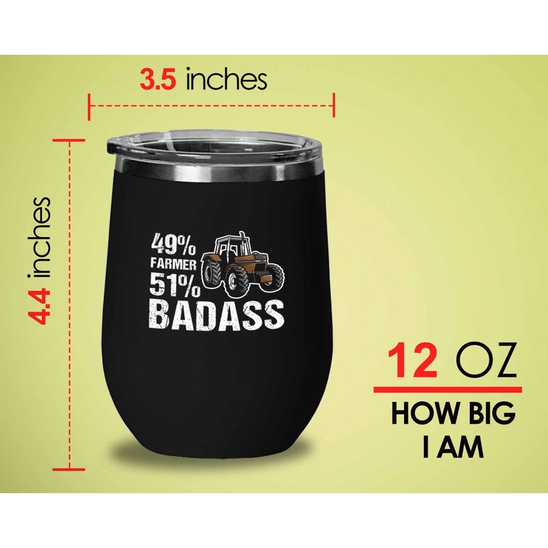 Farmer Black Edition Wine Tumbler 12oz - Farmer Badass - Dry Farming Farm ranch Market Garden Agricultural Seed Drill Acre Hay Tractor Farmer Crops