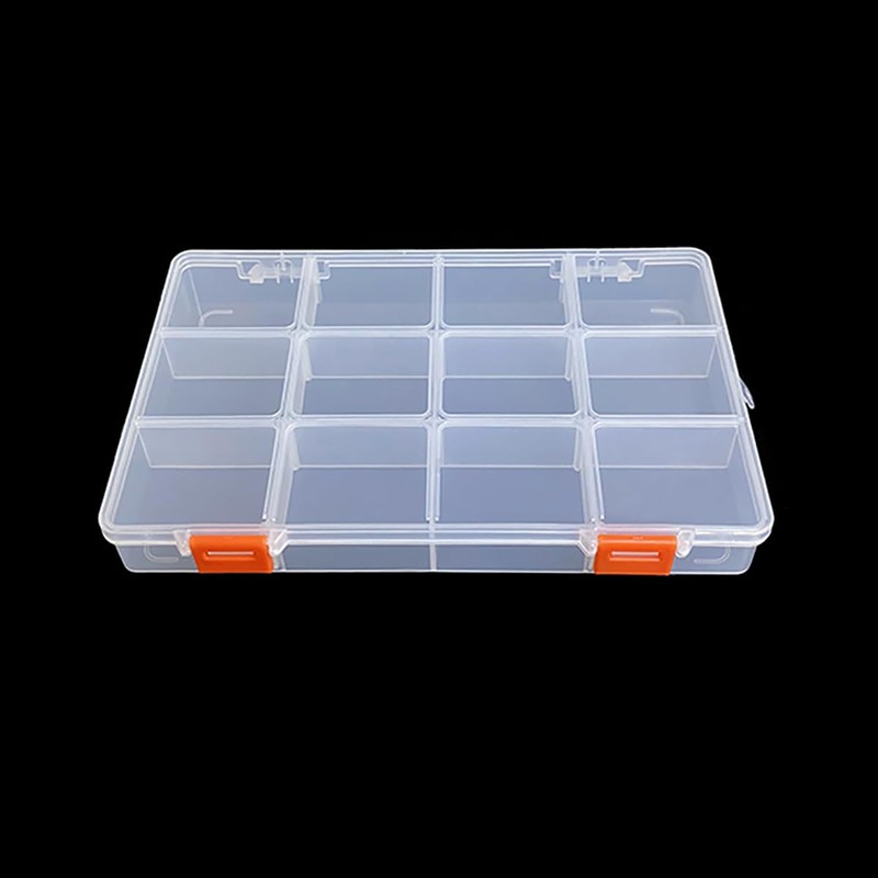 Farmer Mani Clear Bead Storage Containers with Adjustable Dividers Rectangle Clear Craft Supply Case (12 Grids-2 Pack)