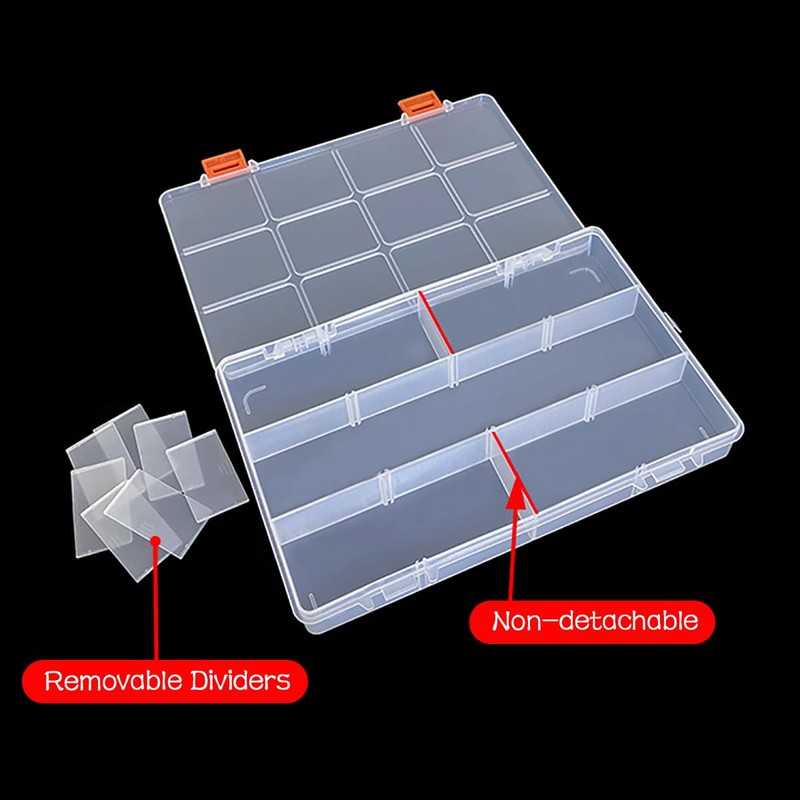 - 🩷【Packaging Includes】:The package contains two plastic box (Empty),12 small compartments.ATTENTION:Partial dividers are removable( As shown in the figure)and can be reattached if they come off