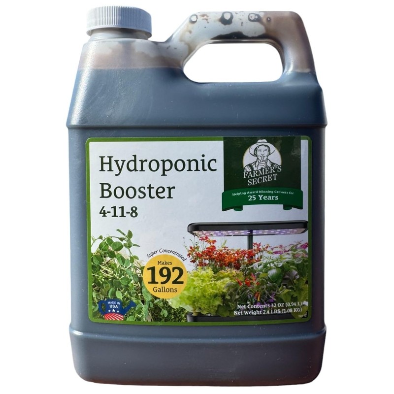 Farmer's Secret Hydroponic Booster Fertilizer - Super Concentrated 4-11-8 Formula - Use with Any Hydroponic or Aeroponic System - Great for Herbs, Veggies, Fruits, and More (32oz)